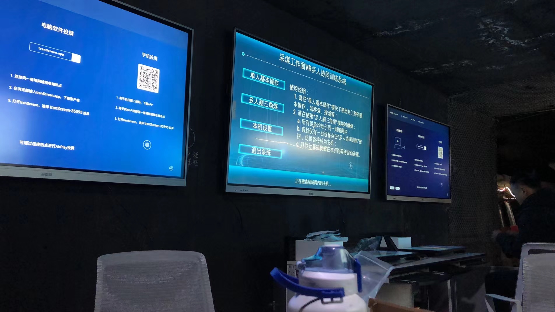 智能采煤工作面MR多人协同演练与考核系统,包含工种有采煤机司机、液压支架工、集控工多工种协同模拟演练实操考核系统。