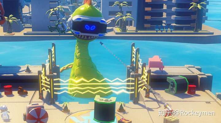 PlayRoom VR :这是 PSVR 官方出品的本地互动类小游戏合集,最多支持1个VR玩家+4个TV玩家共同进行游戏。TV玩家使用摇杆手柄,对着电视参与到游戏中。
