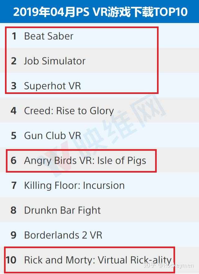而在2019年4月PSVR Top10 的榜单上,有一半都是简约的卡通渲染风格,靠可玩性取胜的游戏。